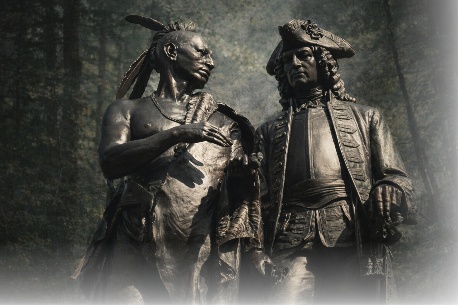 Sir William Johnson and a Mohawk leader, Chief Hendrick, emblematic of frontier diplomacy.